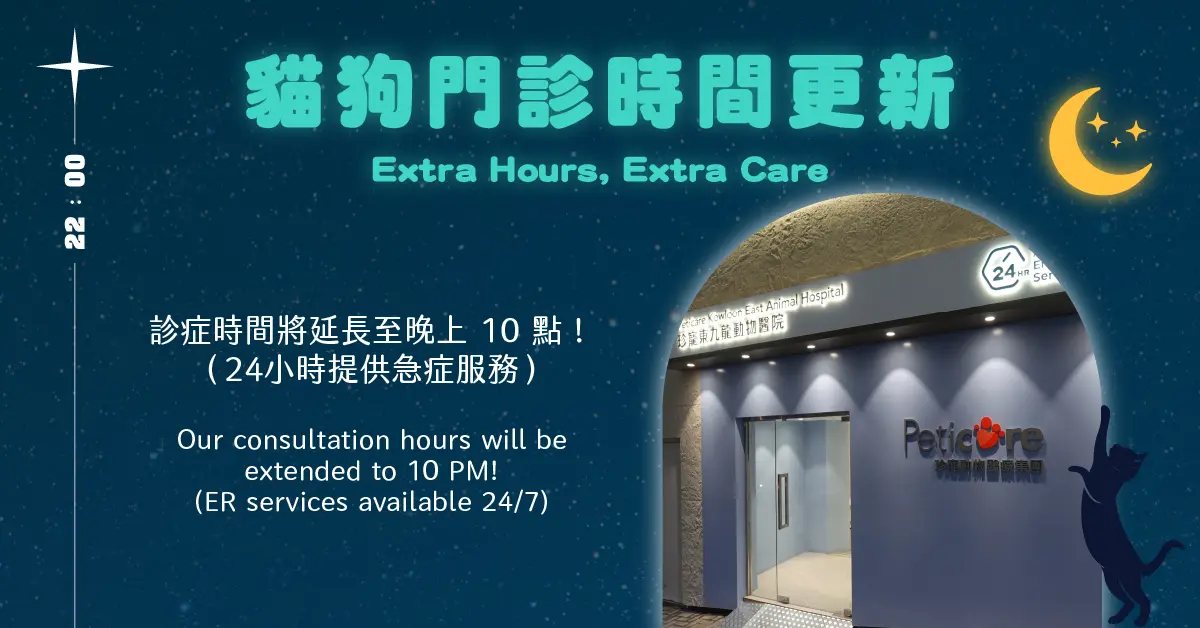 溫馨提示:此網站內容僅供一般參考,並不構成任何醫療診斷或治療建議。如寵物出現不適或異常情況,請盡快帶牠前往動物醫院,讓獸醫作出專業評估與處理。